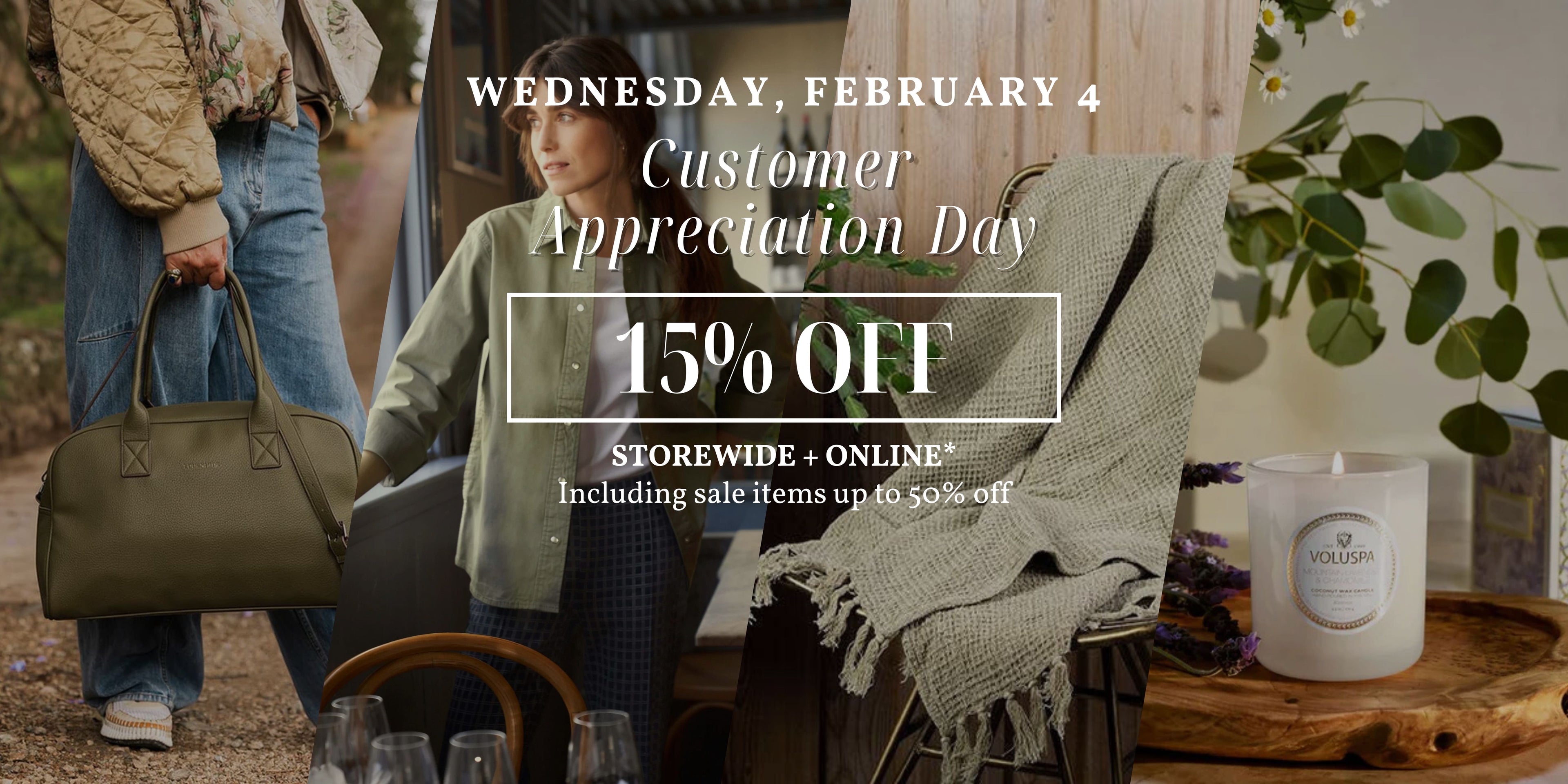 The first Wednesday of every month! Save 15% off all regular priced products plus 15% off all clearance up to 50% off!