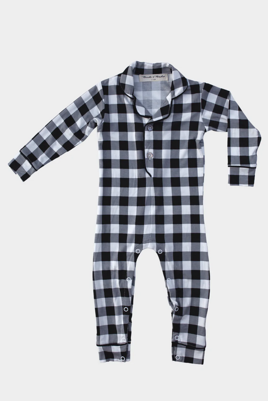 Black Gingham Collared Baby Romper