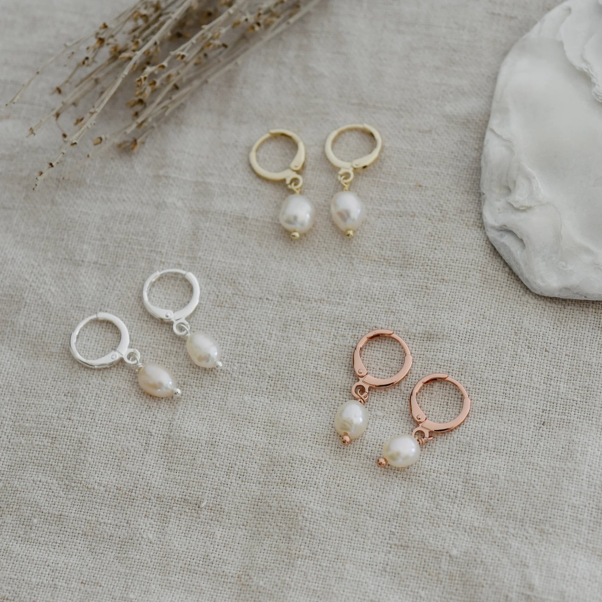 Details: approx. 1" long from the top of hoop - made with fresh water pearls - silver, gold or rose gold plated - hypoallergenic, nickel/lead free - anti-tarnish coated