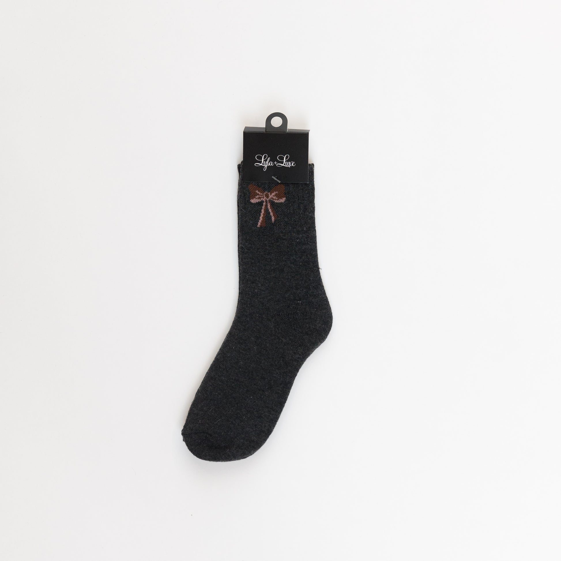 Add some flair to your outfit with these printed socks, available in various colors and with a pretty bow design. Knit in a breathable and durable cotton blend, these socks are easy to wear and care for. The fun designs make them a great way to add a playful statement to your look.