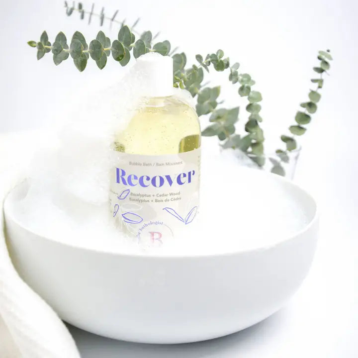 Recover Bubbles are made with eucalyptus and cedarwood essential oils, aloe botanicals and enriched with vitamin E. These SLS-free bubbles relax your mind, body and soul without any harsh chemicals.
