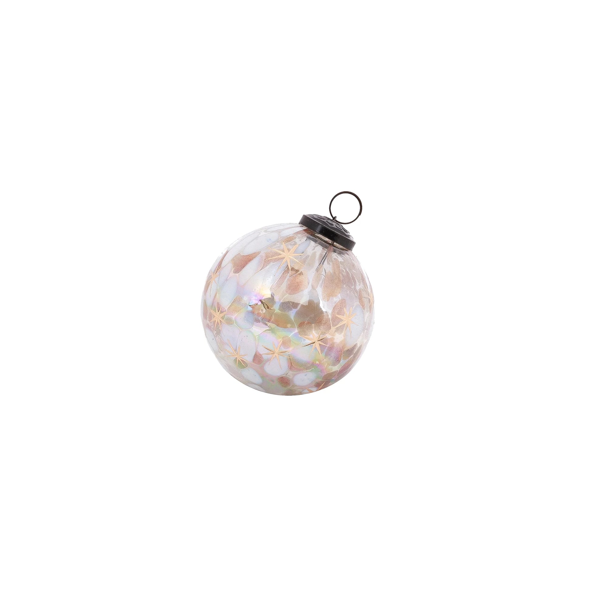 The Celine Ornament, crafted from glass and adorned in stunning silver and gold tones, exudes a sophisticated and festive charm. Its reflective surface catches the light, creating a shimmering, luxurious effect that enhances any holiday display. The elegant combination of silver and gold adds a touch of glamour, making it a perfect accent for Christmas trees or wreaths. Its delicate glass construction offers a timeless, high-end appeal, ideal for both modern and traditional decor. Handcrafted with care, this ornament is a beautiful addition to your holiday collection or a thoughtful gift for loved ones.