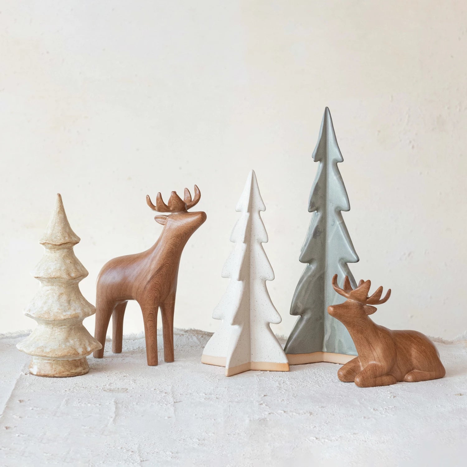 This cream decorative stoneware tree with reactive glaze is a beautiful and convenient way to decorate for the holidays. Each piece has a unique pattern, making it a one-of-a-kind item. The tree has a smooth and glossy texture that is pleasant to touch and look at. The tree is ideal for displaying on a table, shelf, or mantel, where it can add a touch of sophistication and charm to any space.