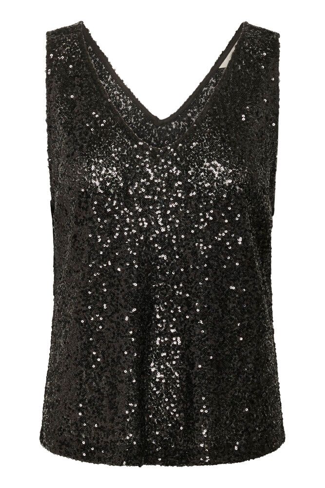 Diddi Top Pitch Black from Cream is a glamorous and stylish black sequin top that will elevate any outfit. The classic black color combined with shiny sequins gives you a party-ready look - perfect for both Christmas parties and casual evenings.