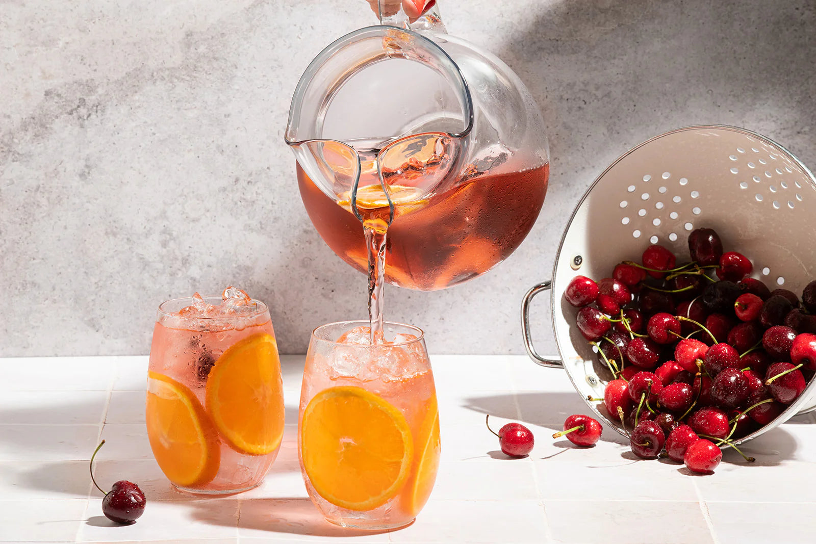 Feeling Spritzy? Why not try a juicy blend of cherries, oranges, apples & hibiscus flowers with organic cane sugar for our all-natural take on a wine Spritzer.