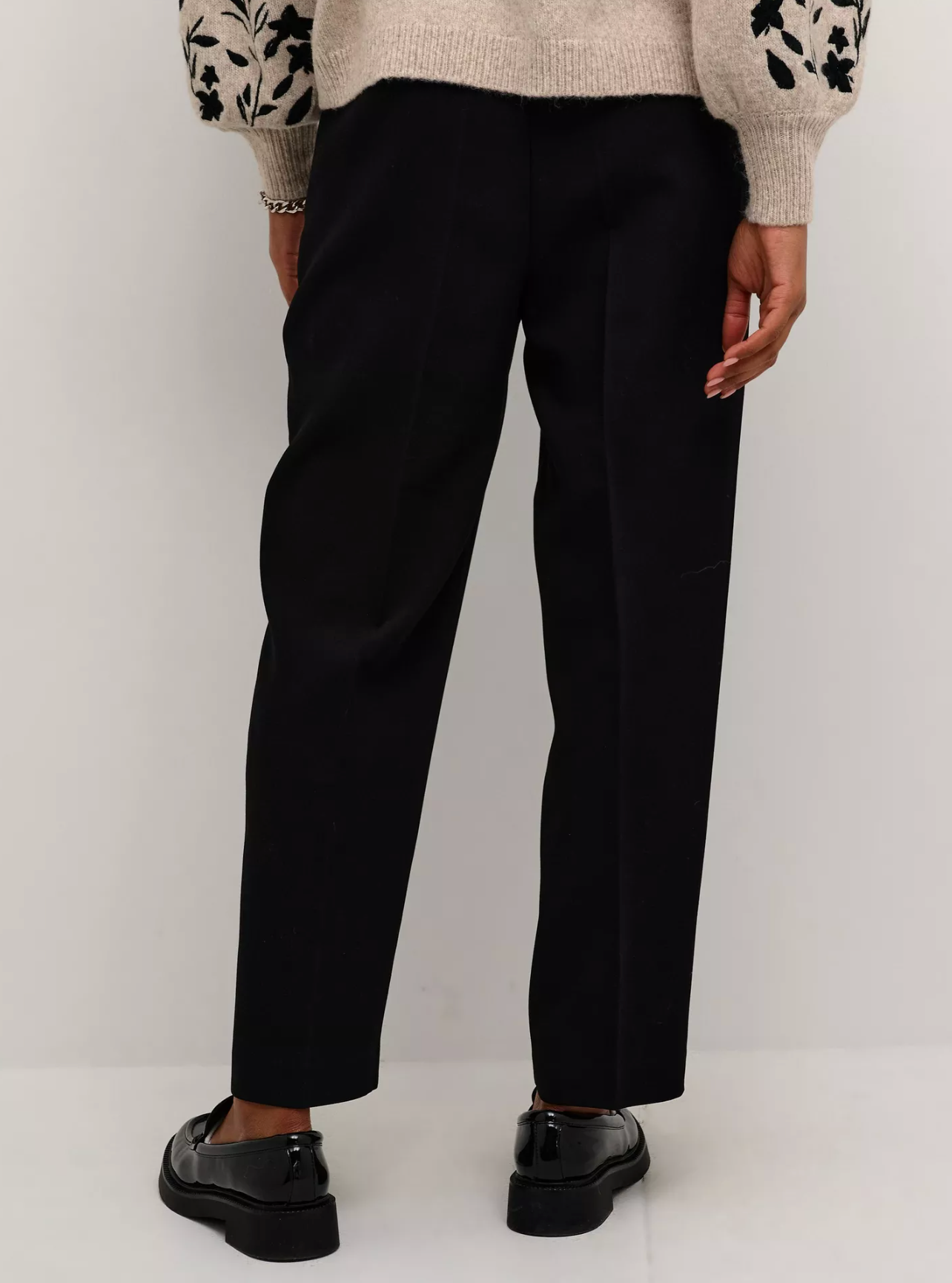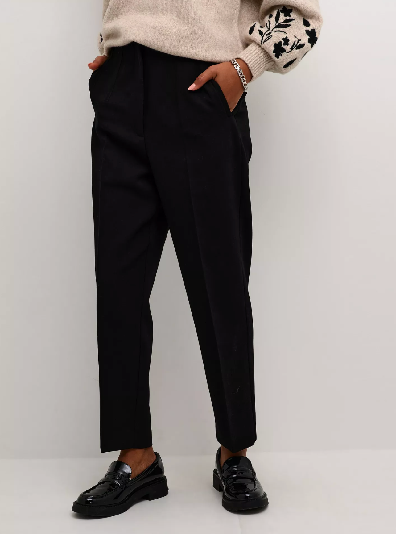 The hella trousers are a simple and stylish pair of trousers , that you can wear with any top. They are high-waisted with a hidden waistband and zipper fastening, and they have a regular fit. The legs have a straight fit and are cropped above the ankles, and the trousers have seamed side pockets.