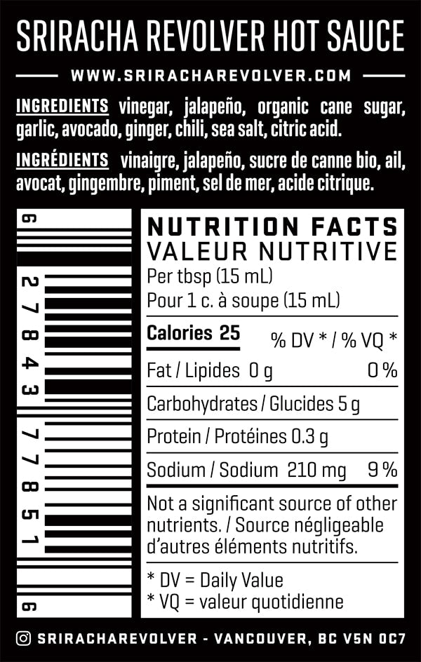 Ingredients: Vinegar, jalapeño, organic cane sugar, garlic, avocado, ginger, chili, sea salt, citric acid.