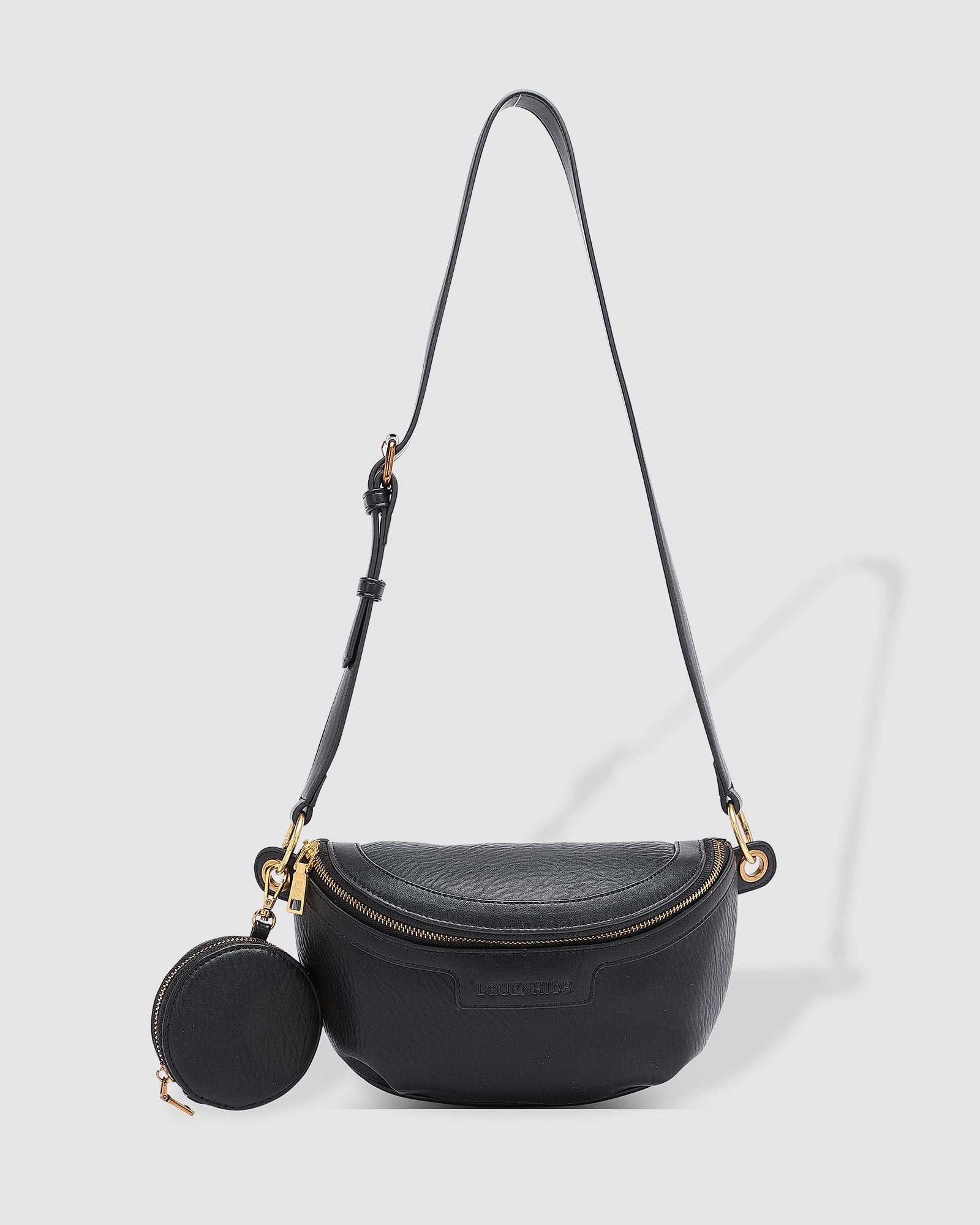 The Louenhide Joey Sling Bag is the epitome of convenience and style. This women’s bum bag is the perfect solution for the modern traveller who values both practicality and elegance. Keep your hands free to explore, snap photos or simply enjoy the journey knowing your essentials are conveniently within reach. The secure zip closure ensures your belongings stay safe and secure, while the gold hardware adds an elegant touch. The Joey also includes the perfect mini zip purse, ideal for your AirPods or favourite lip gloss.
