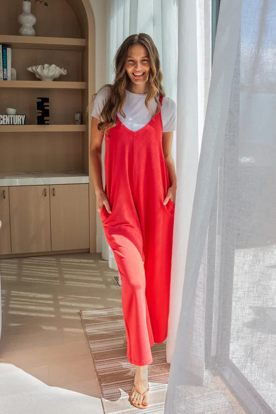Meet your new wardrobe staple: the Josie Jumpsuit. Crafted from ultra soft, organic bamboo fabric, this effortless design ensures year-round comfort. Layer with one of our classic tees for an elevated look. The flowy silhouette and flattering wide leg create a chic, stress-free style for everyday wear.