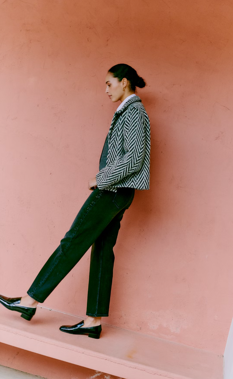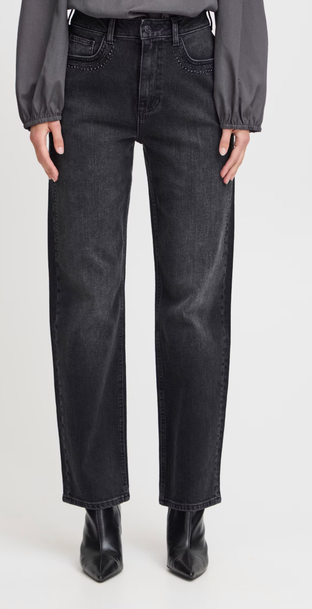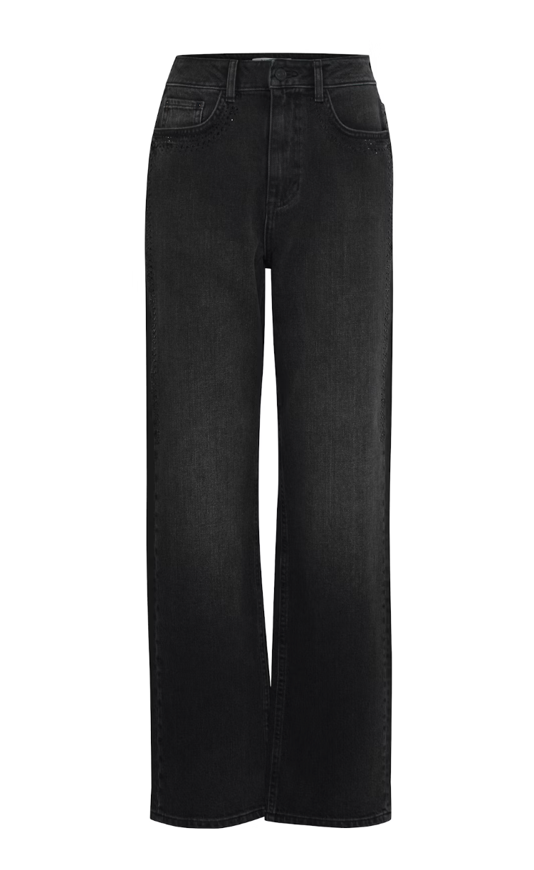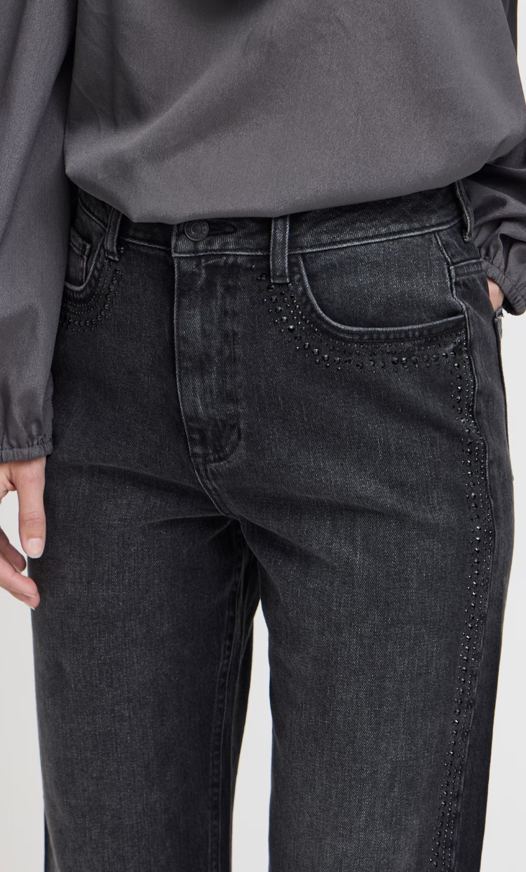 Add a touch of holiday magic to your Winter look with the Lara Jeans. In a washed black, these jeans feature subtle black rhinestone detailing down the side of the leg.