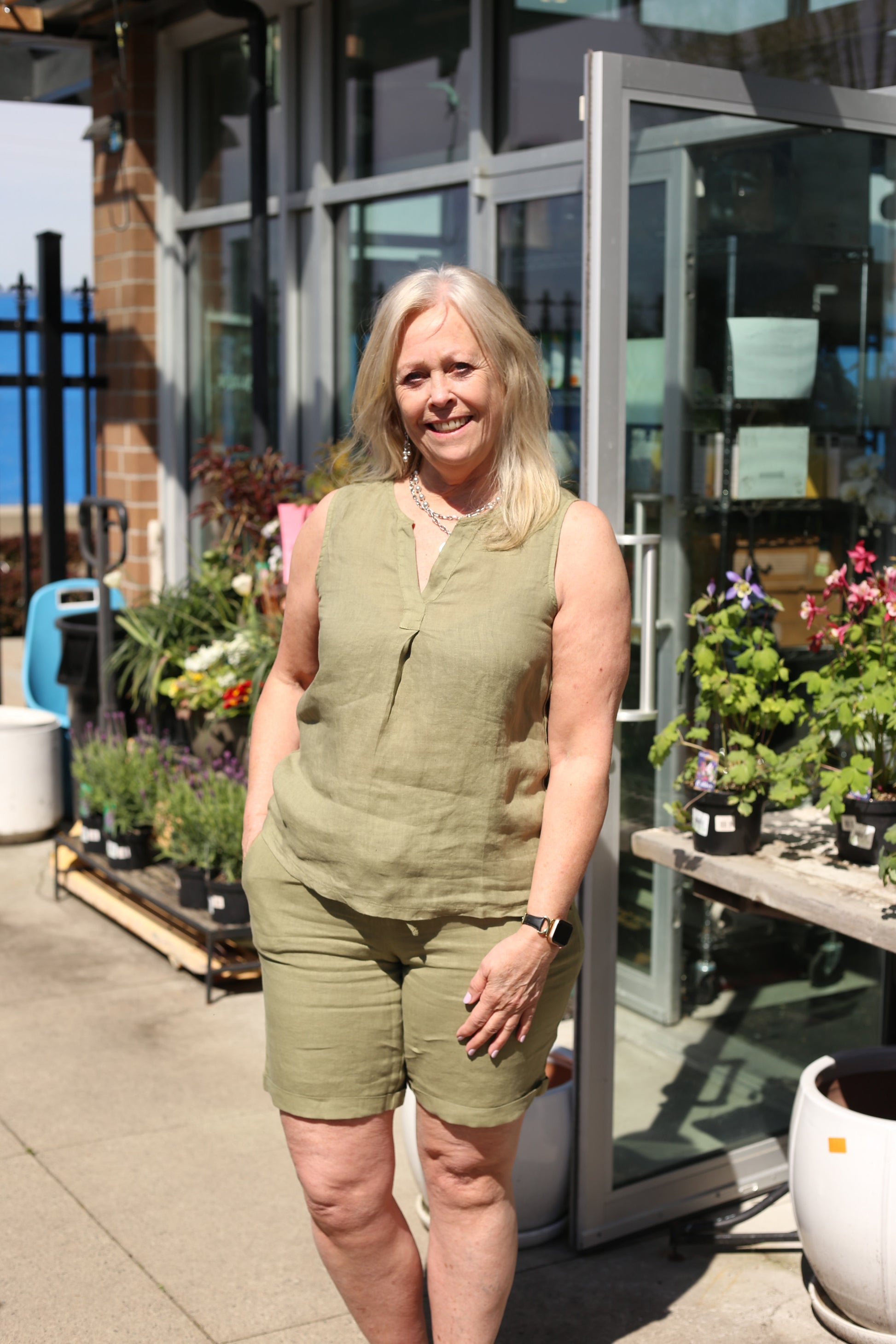 These linen shorts feature a ribbed elastic waistband and linen tie.