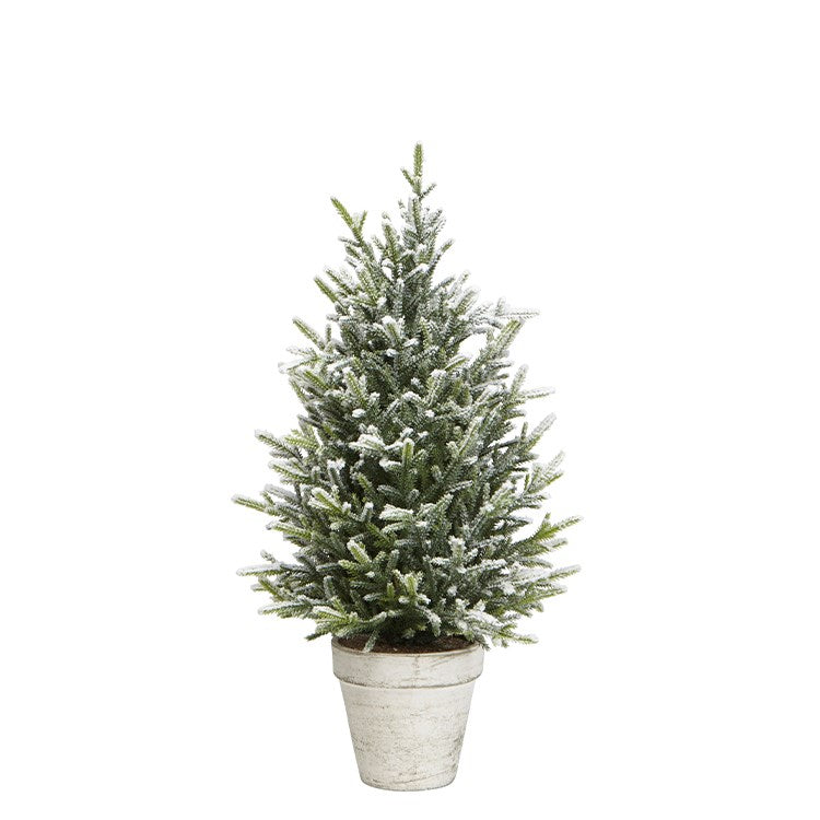 Pretty potted snow covered fern trees add a charm to your holiday decor.