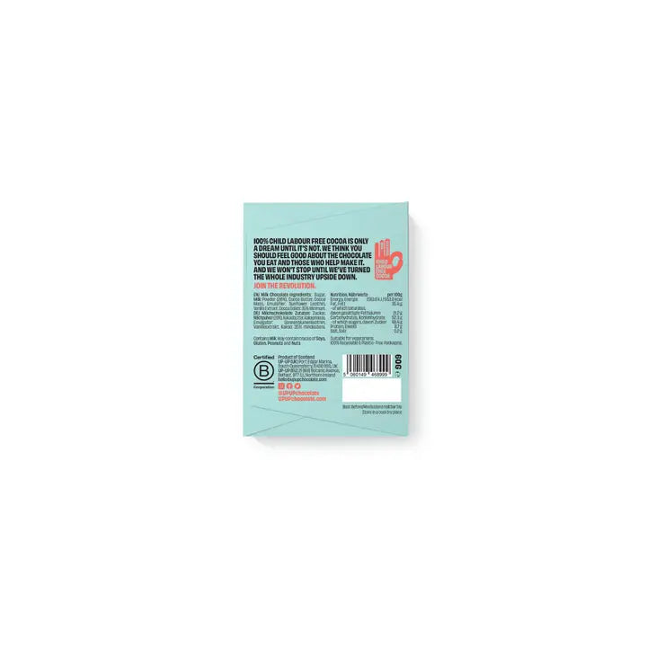 A smooth operator that knows how to sell. UP-UP Milk Chocolate 60g is your tillside heavy hitter - classic taste with an ethical twist. Made with creamy single estate Colombian cocoa, this bar delivers rich flavour, vibrant shelf presence, and proven high ROS. It’s palm oil free, vegetarian, and crafted with fully traceable, child-labour-free cocoa. Perfect for impulse fixtures and ethically-minded consumers who crave feel-good chocolate. ✔️ 35% cocoa solids 🇨🇴 Single estate Colombian cocoa 🌍 Palm oil free ♻️ Recyclable packaging ✋ Verified child-labour free