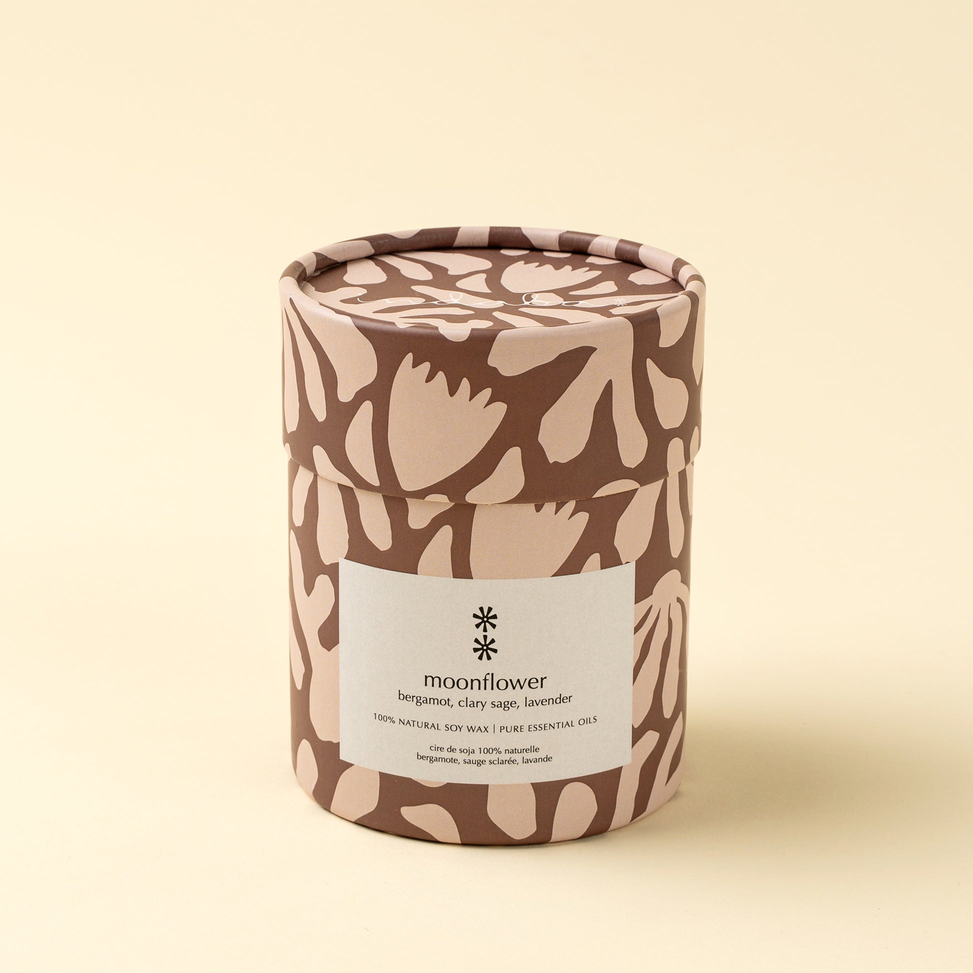 Set a calming mood with the Moonflower Soy Candle, a handcrafted accent made from sustainable materials and infused with pure essential oils. With a soothing scent blend of bergamot, clary sage, and lavender, this candle invites quiet moments and restful rituals. Its ethereal aroma and elegant packaging offer a dreamy candle experience and a thoughtful gift aesthetic for any occasion.