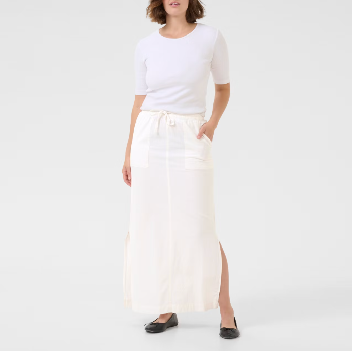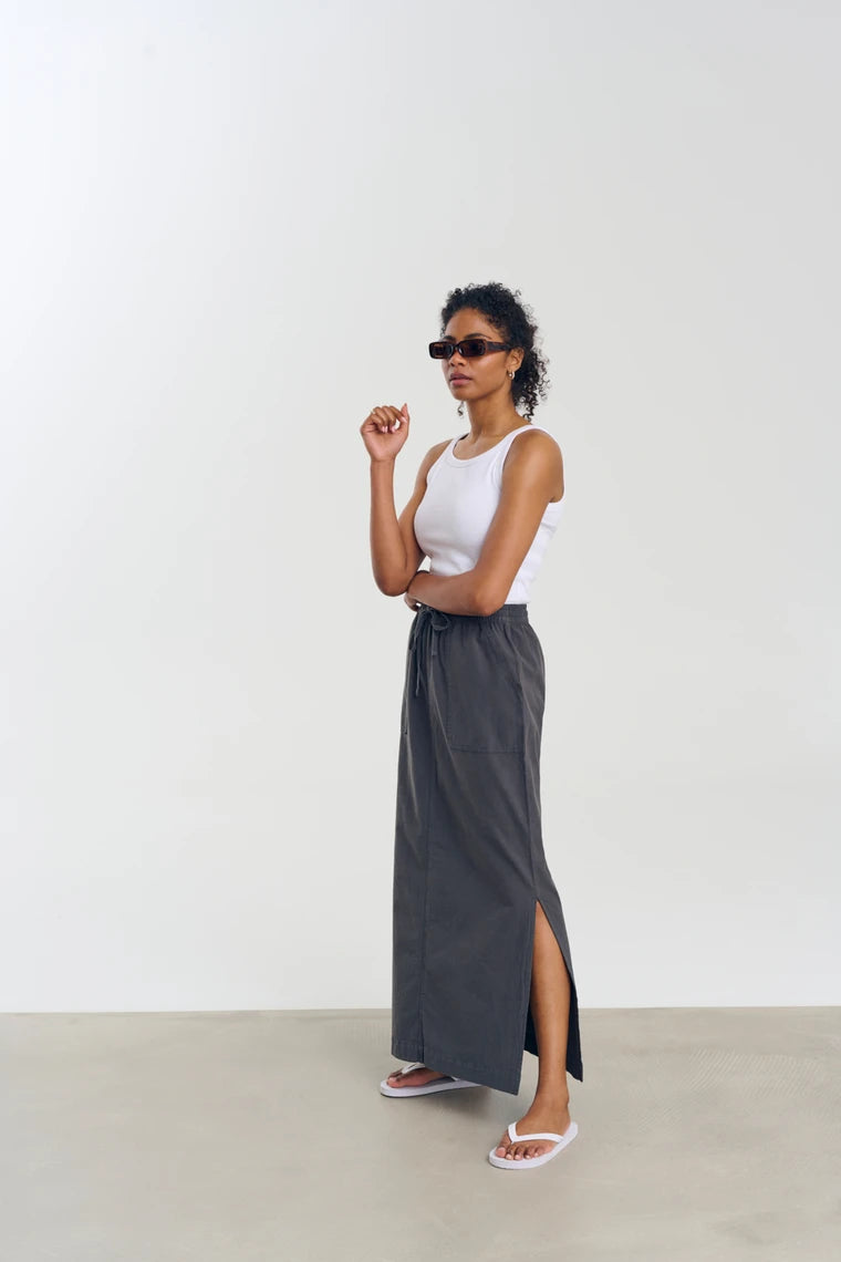 Experience the perfect blend of comfort and style with the Naya Liah Cargo Style Skirt. This skirt features an elasticated waist with drawstrings, side pockets, and a high-waisted design for a flattering fit. The long length with a hem slit adds a touch of elegance and versatility to the skirt. Get ready to turn heads and make a statement with this must-have addition to your wardrobe.