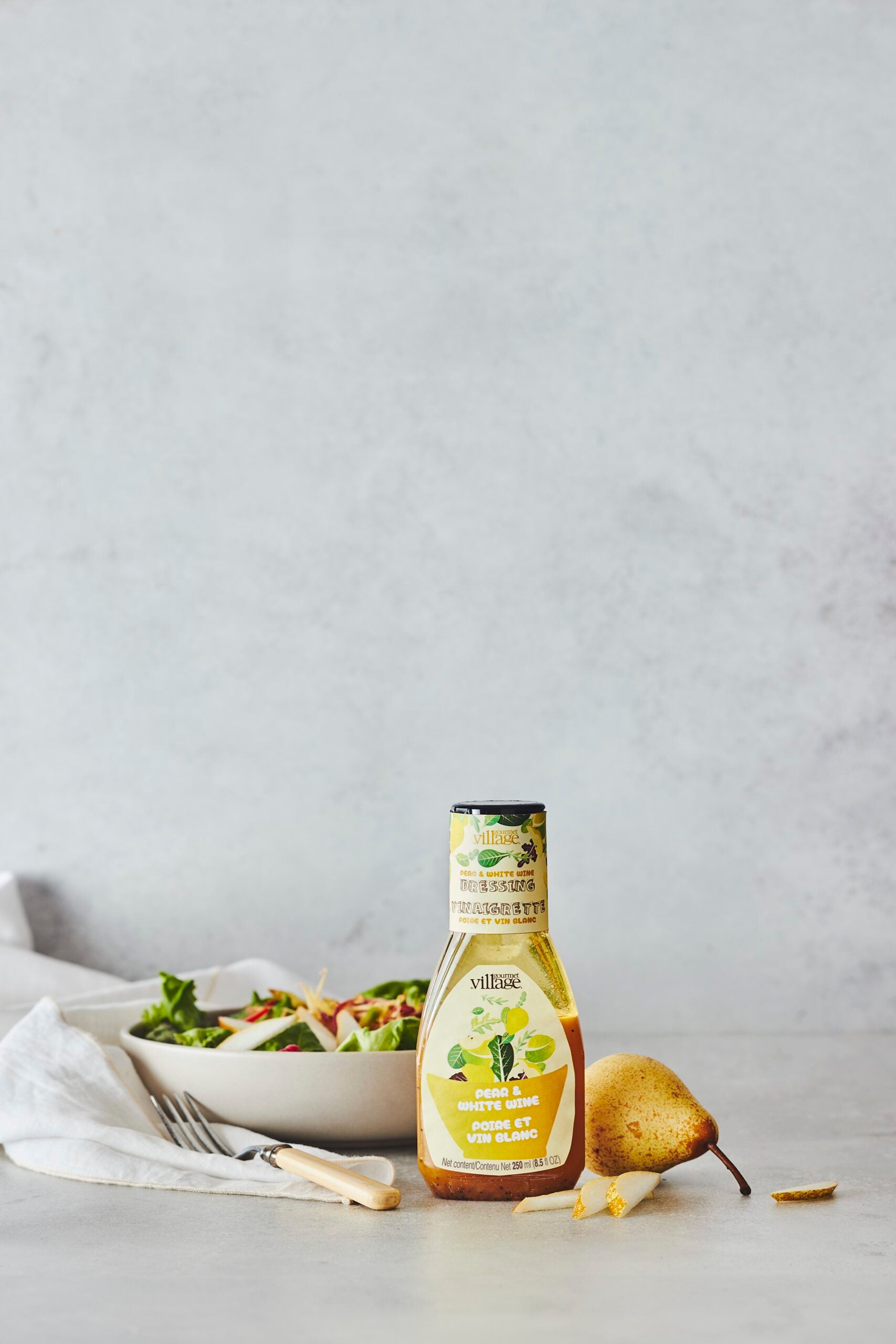 A well-balanced flavor of sweet Pear with subtle hints of white Chablis wine. This is a light and crisp salad dressing that lends itself to a simple yet elegant lettuce salad, think of adding goat cheese or caramelized pecans, so delicious.