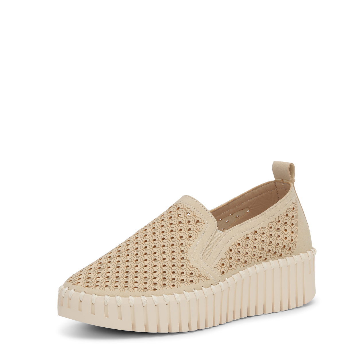 Meet our Platform Elastic Tulip Shoe. The upper, boasting recycled microfiber with The original Tulip laser-cut pattern, seamlessly joins our iconic Tulip outsole, made of 75% natural rubber and 25% recycled rubber, secured with matching recycled thread and no glue. Inside, the pig suede-lined insole ensures comfort with added padding and support. Elevate your footwear game with these comfortable and stylish shoes.