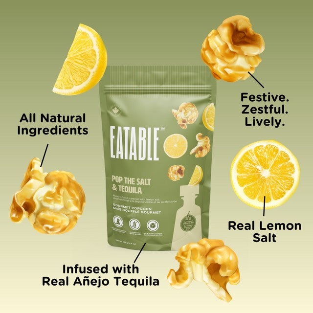 Pop the Salt & Tequila Caramel Popcorn combines lively flavors with a gourmet twist, featuring air-popped whole grain popcorn coated in a smooth Añejo tequila-infused caramel, sprinkled with zesty lemon salt. This snack is baked to achieve a perfect crunch, capturing the essence of a festive celebration. Showcased on the TODAY Show, this popcorn is recognized for its exceptional taste and quality. Crafted with natural ingredients and free from artificial colors or flavors, it's suitable for vegetarians and adheres to a gluten-free diet. The non-GMO, locally sourced kernels ensure both quality and authenticity.