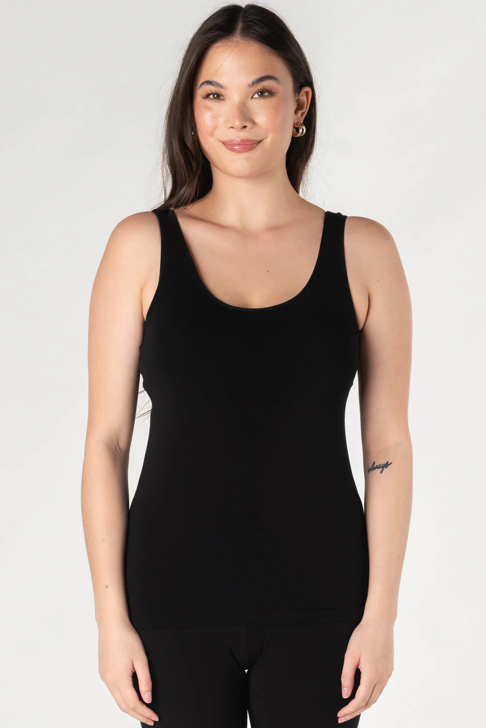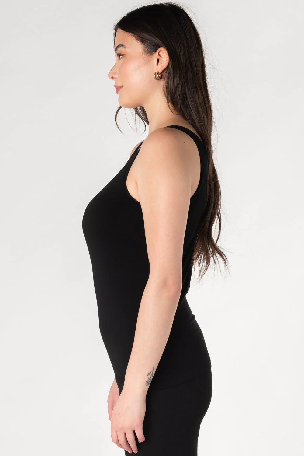 A closet staple that combines a bra and a tank top in one. This seamless bra tank can be worn as a layering piece or on its own. Made with our sweat-wicking, soft, and breathable bamboo fabric.