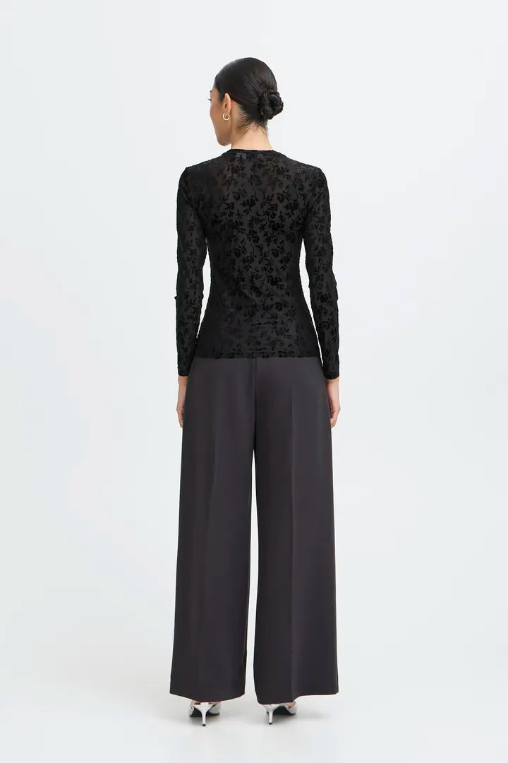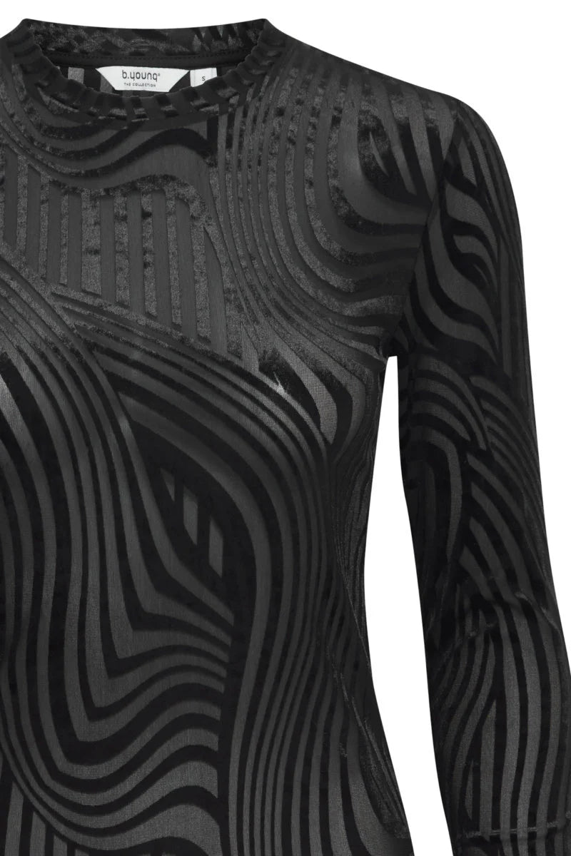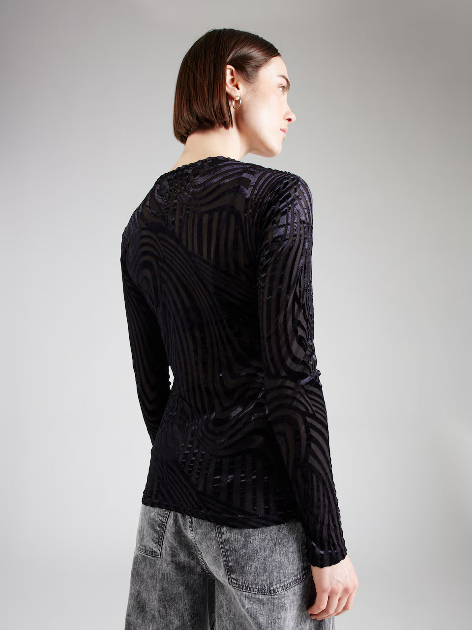 The perfect little top for the party season! A longsleeved T in a stretchy devoré fabric with a pattern of velvety swirls.