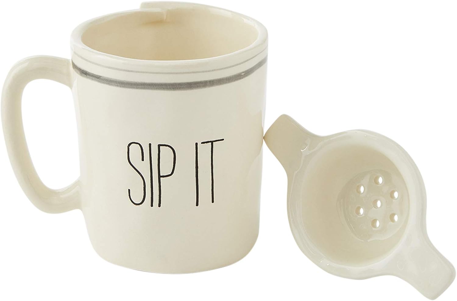 - Hand-painted ceramic mug with debossed sentiment arrives tied with coordinating tea strainer.