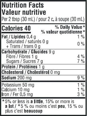 INGREDIENTS: Cider vinegar, water, tomato paste, brown sugar, molasses, whiskey, onion, salt, Worcestershire sauce (white vinegar, black strap molasses, glucose-fructose, onion, anchovies, water, salt, garlic, tamarind extract, spices, flavour), canola oil, smoked paprika (paprika, smoke powder [maltodextrin, mesquite flavor]), mustard, garlic puree (garlic, citric acid), cracked black pepper, spices.