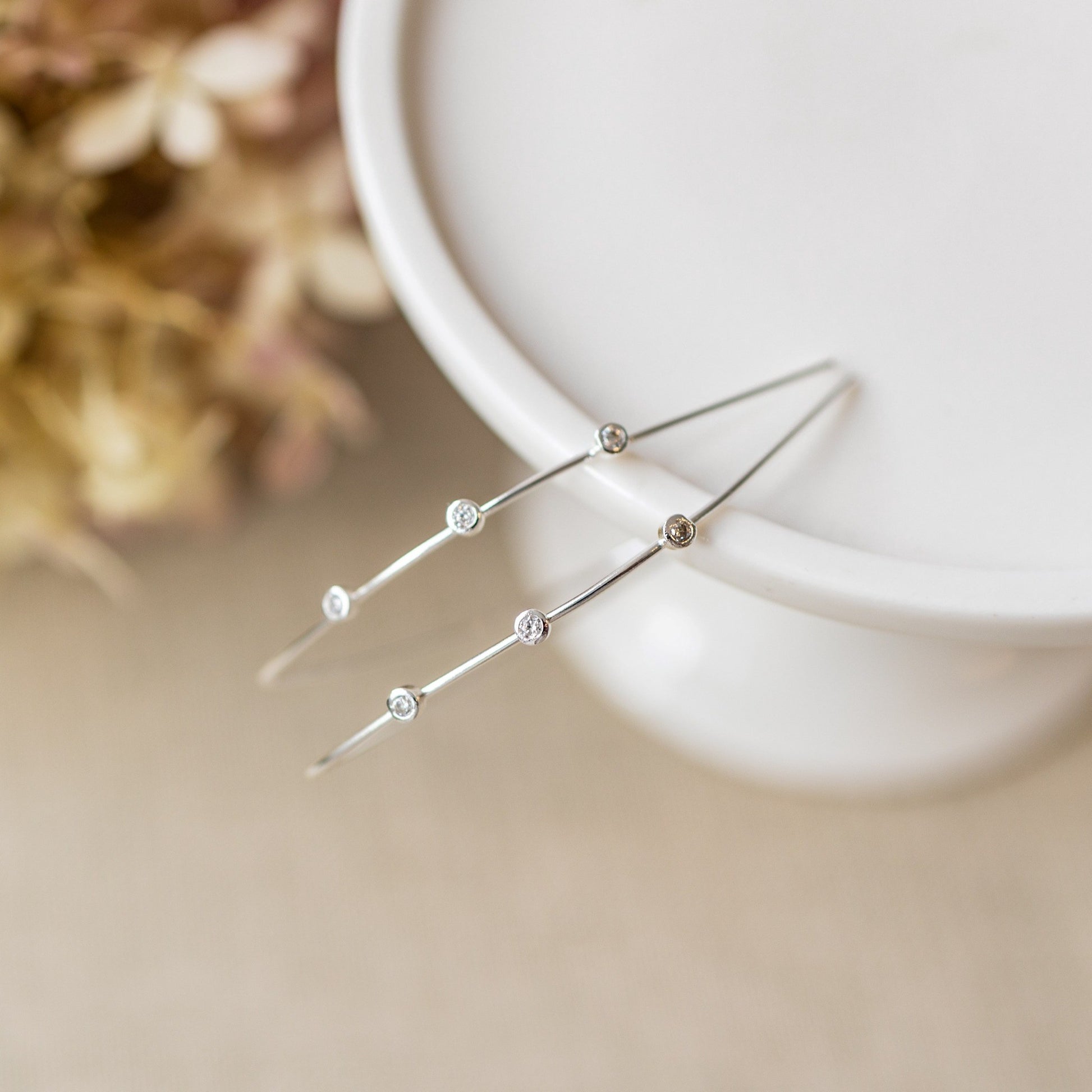These sparkling earrings have a unique arc shape that dazzles the ear!