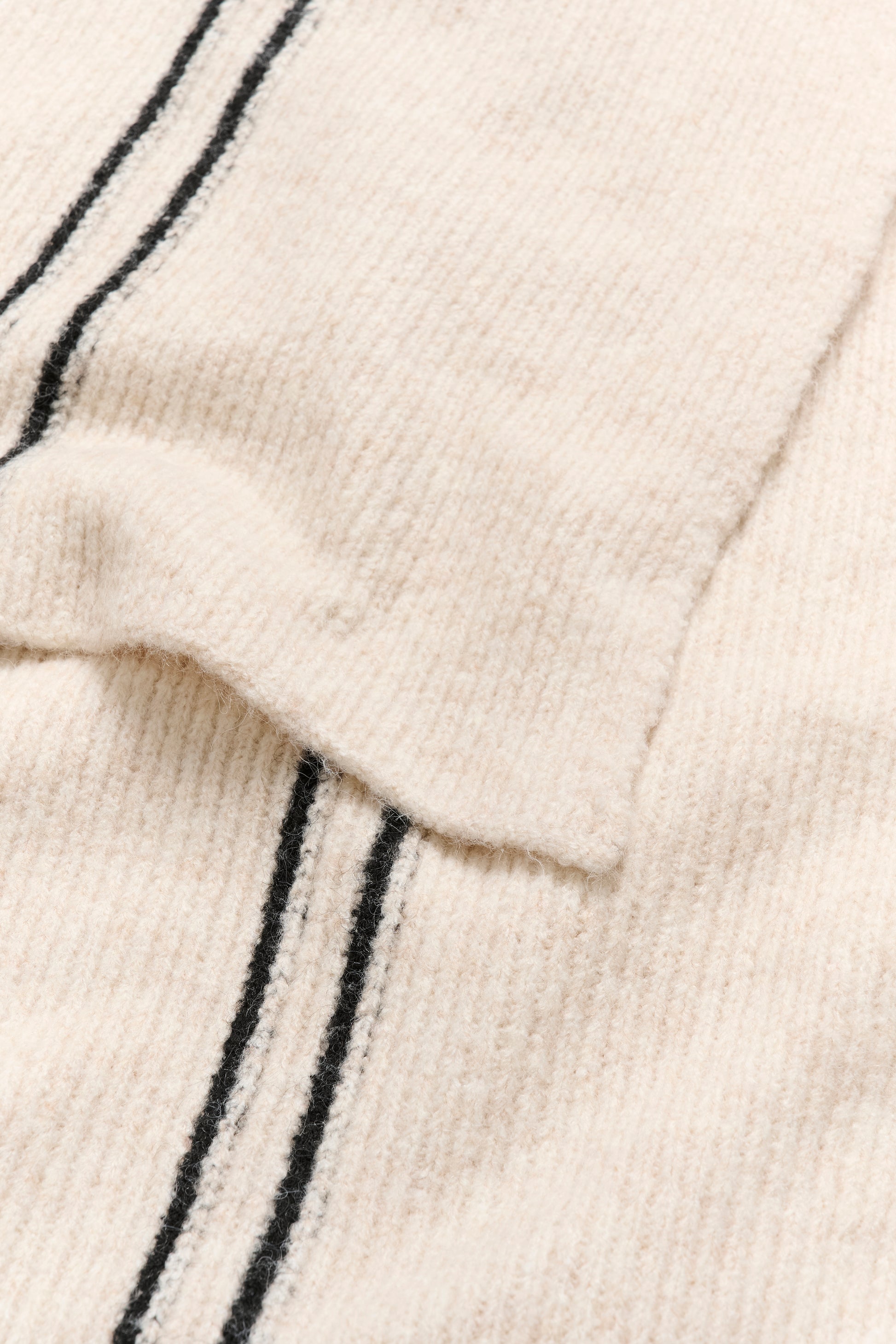 58% polyester 30% acrylic 10% wool 2% elastane, delicate wash at 30 degrees.