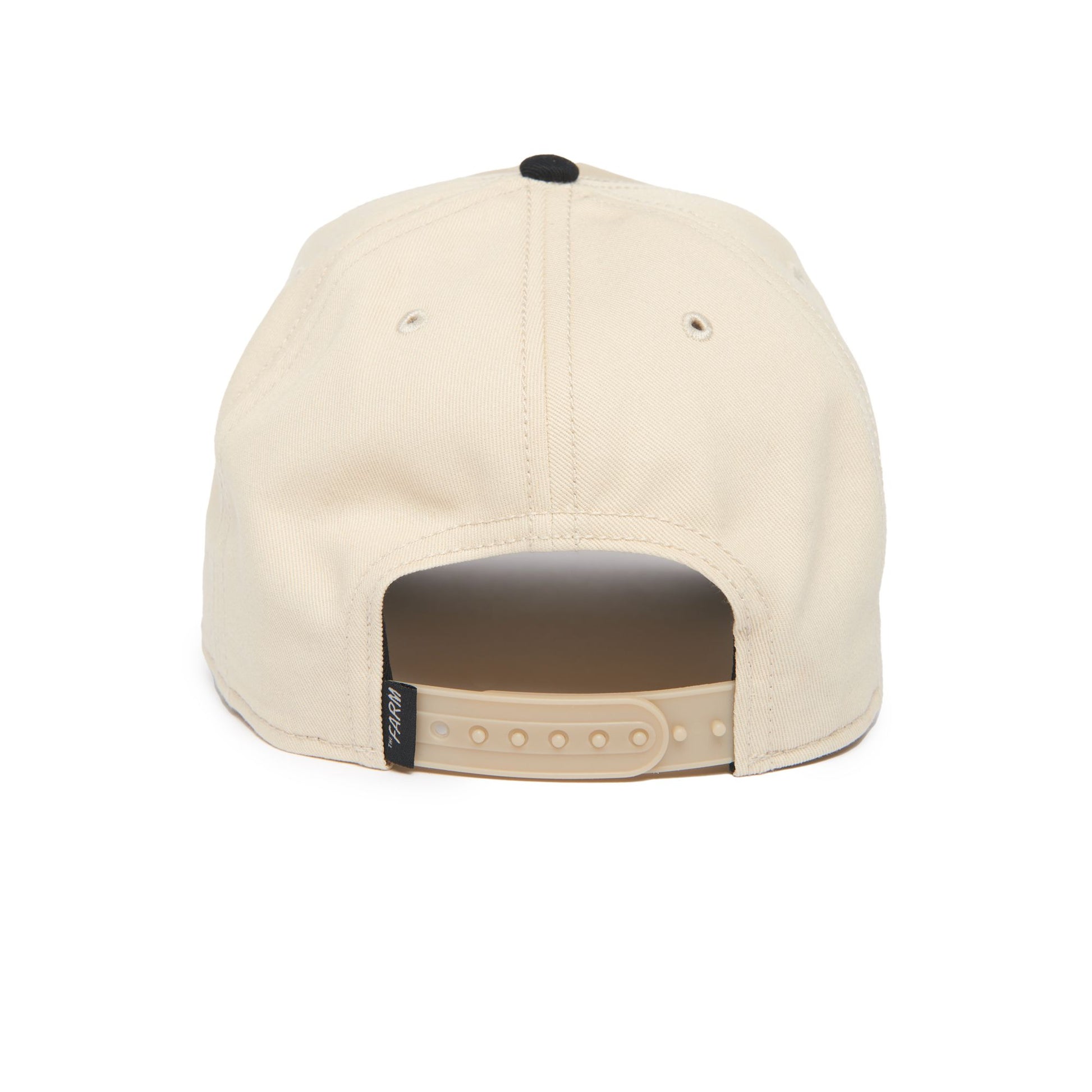 Part of The Farm collection, The Cock Trucker Hat from Goorin Bros mixes a classic style trucker hat with fun colours, words and graphics. This hat features a stitch graphic rooster with the words "Cock" embroidered on.