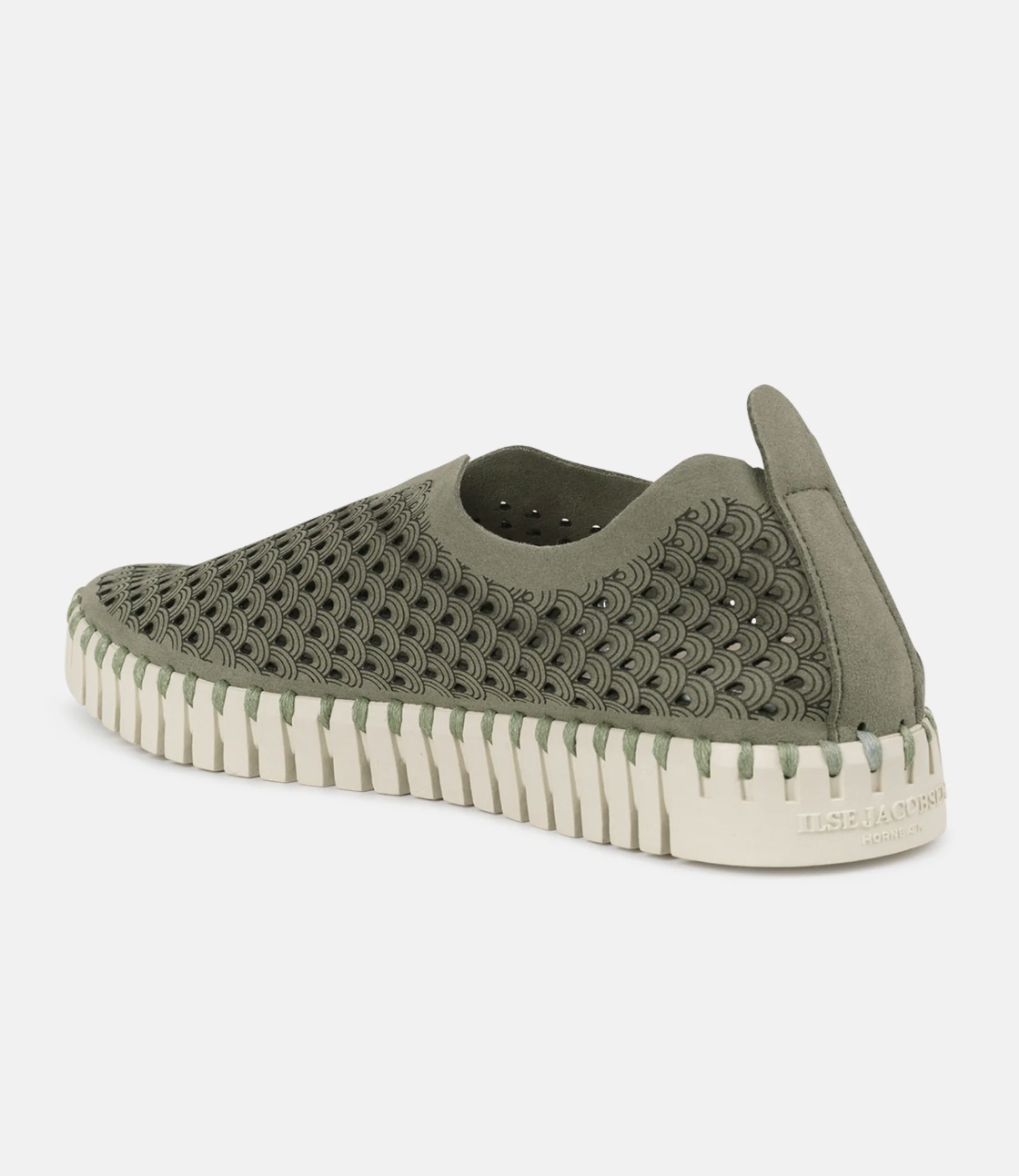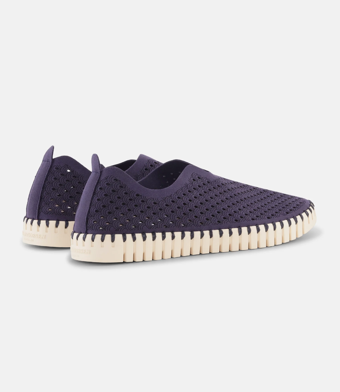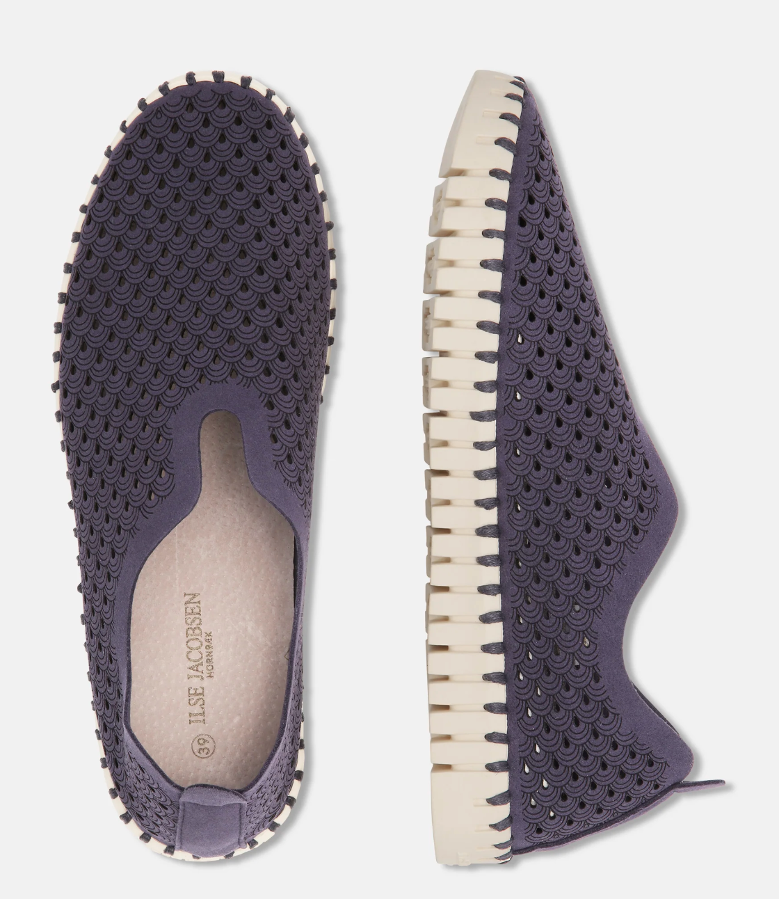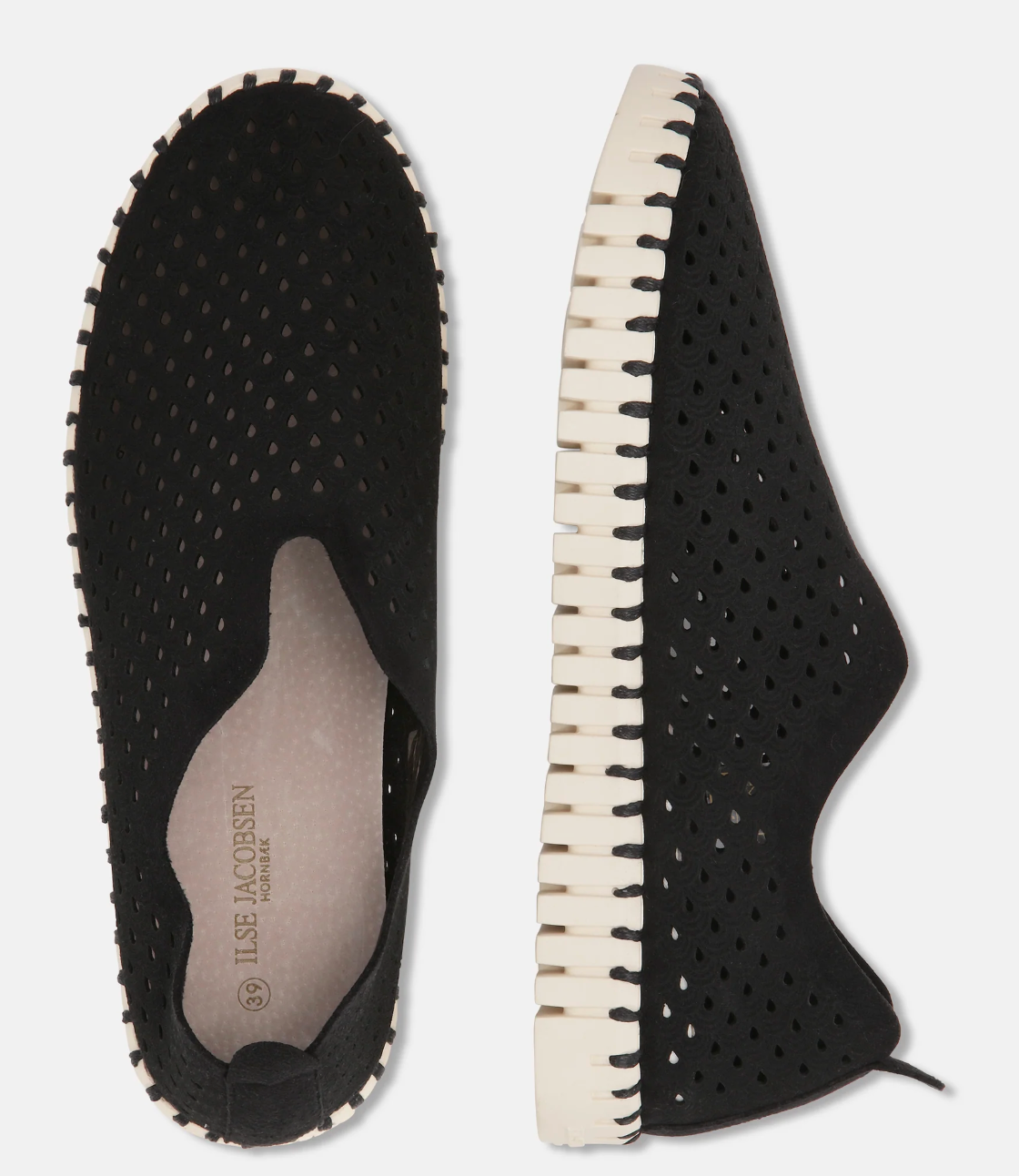Meet the iconic Tulip Shoe by ILSE JACOBSEN HORNBÆK. Crafted with an upper of recycled microfiber and a captivating laser-cut pattern, these shoes perfectly blend style and eco-friendly design. The iconic Tulip outsole, made from 75% natural rubber and 25% recycled rubber, is expertly stitched with matching recycled thread, entirely glue-free. Inside, the pig suede-lined insole provides remarkable comfort through added padding and support. With a variety of color options to choose from, these shoes are the ideal fusion of fashion and environmentally-conscious choices. Elevate your footwear collection with this iconic and comfortable choice.