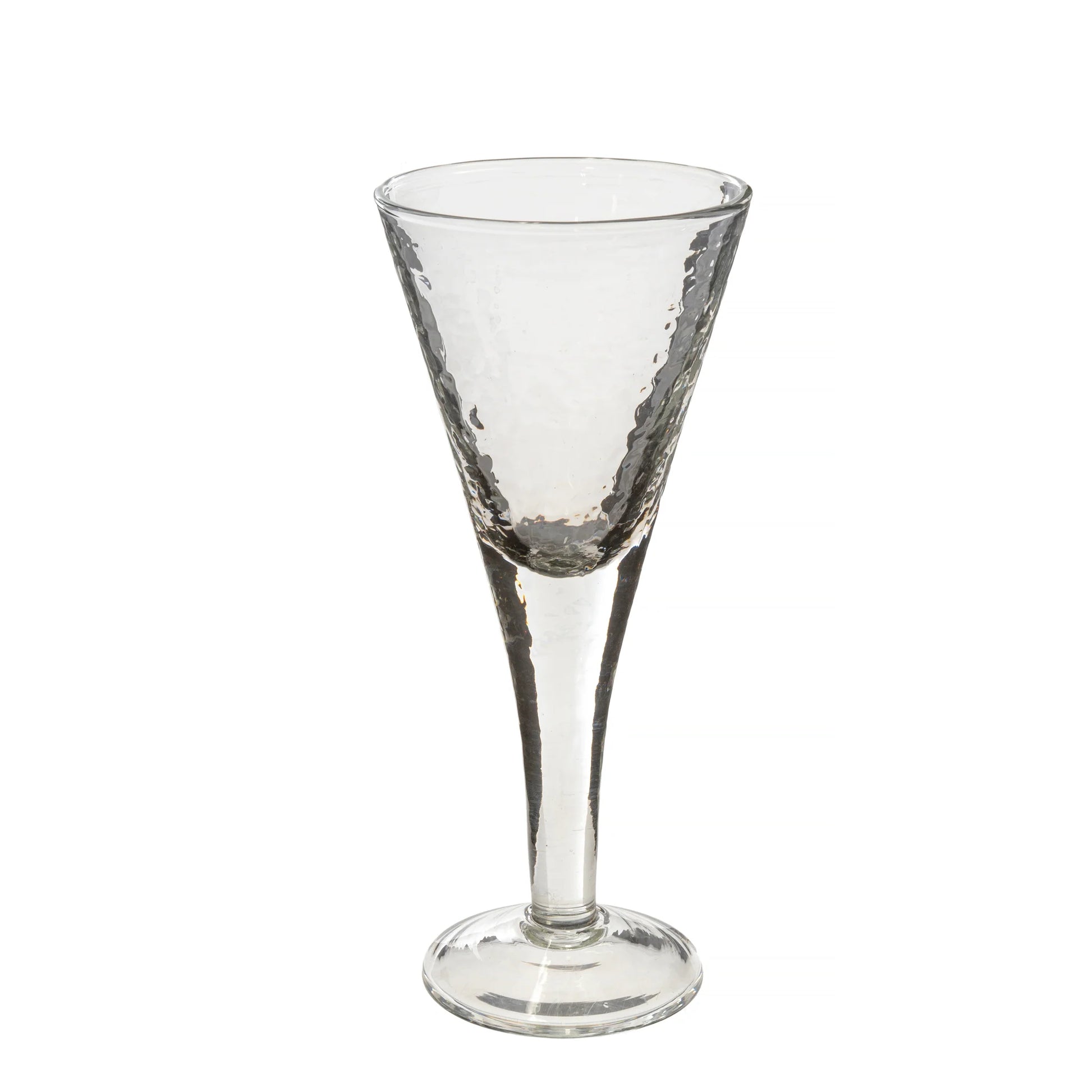 The Valdes champagne glass is made from mouth blown Indian glassware and exudes character - rippled texture, organic shapes, and natural variations from the artisan’s touch bring life and soul to the series. Each piece of Valdes Glassware is unique and brings rich style to the table. Embrace slight variations in height as evidence of their handcrafted nature. Microwave & Dishwasher Safe.