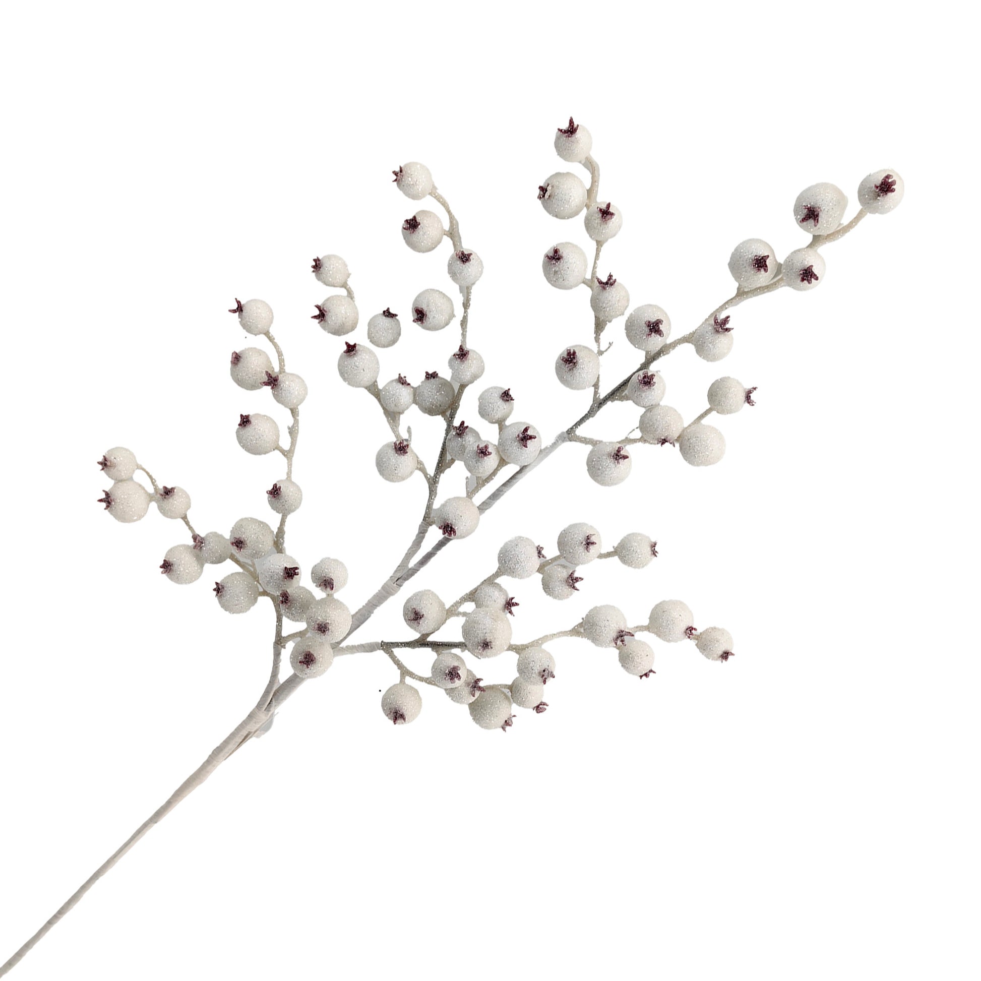 Add a touch of nature to your holiday decor with our beautiful collection of Christmas Berry Stems and Sprays. This white berry spray features a glitter finish giving it an elevated look.
