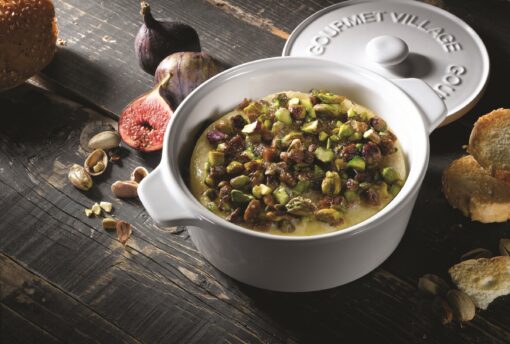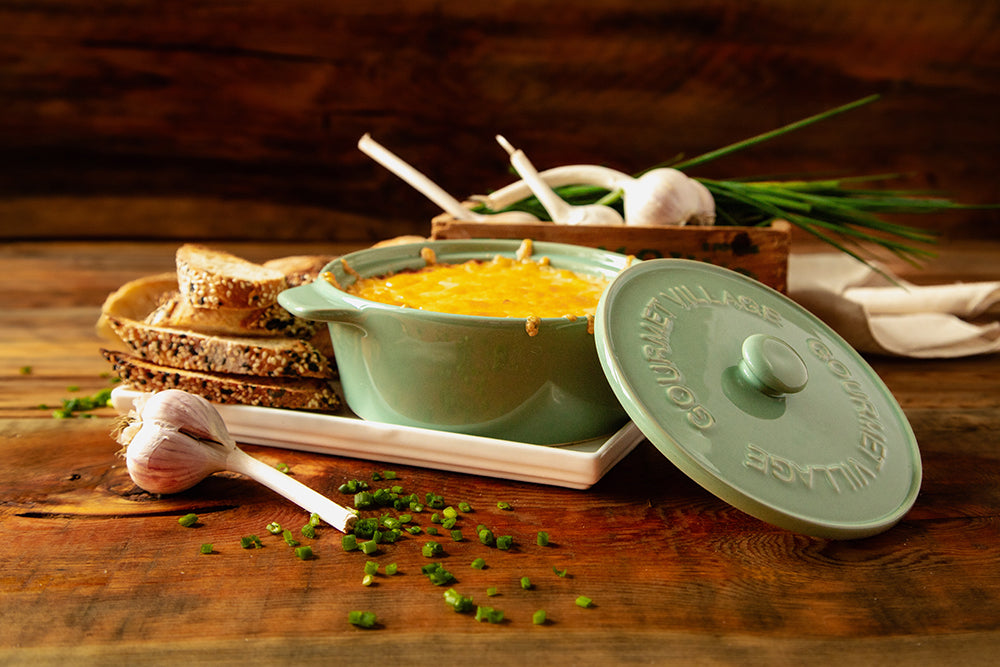 Our versatile two-piece ceramic baker with lid makes a wonderful gift. It is perfect for serving straight from oven to table, it is just the right size for Gourmet du Village Baked Dips and Baked Bries, or use it to prepare side dishes or small casseroles.