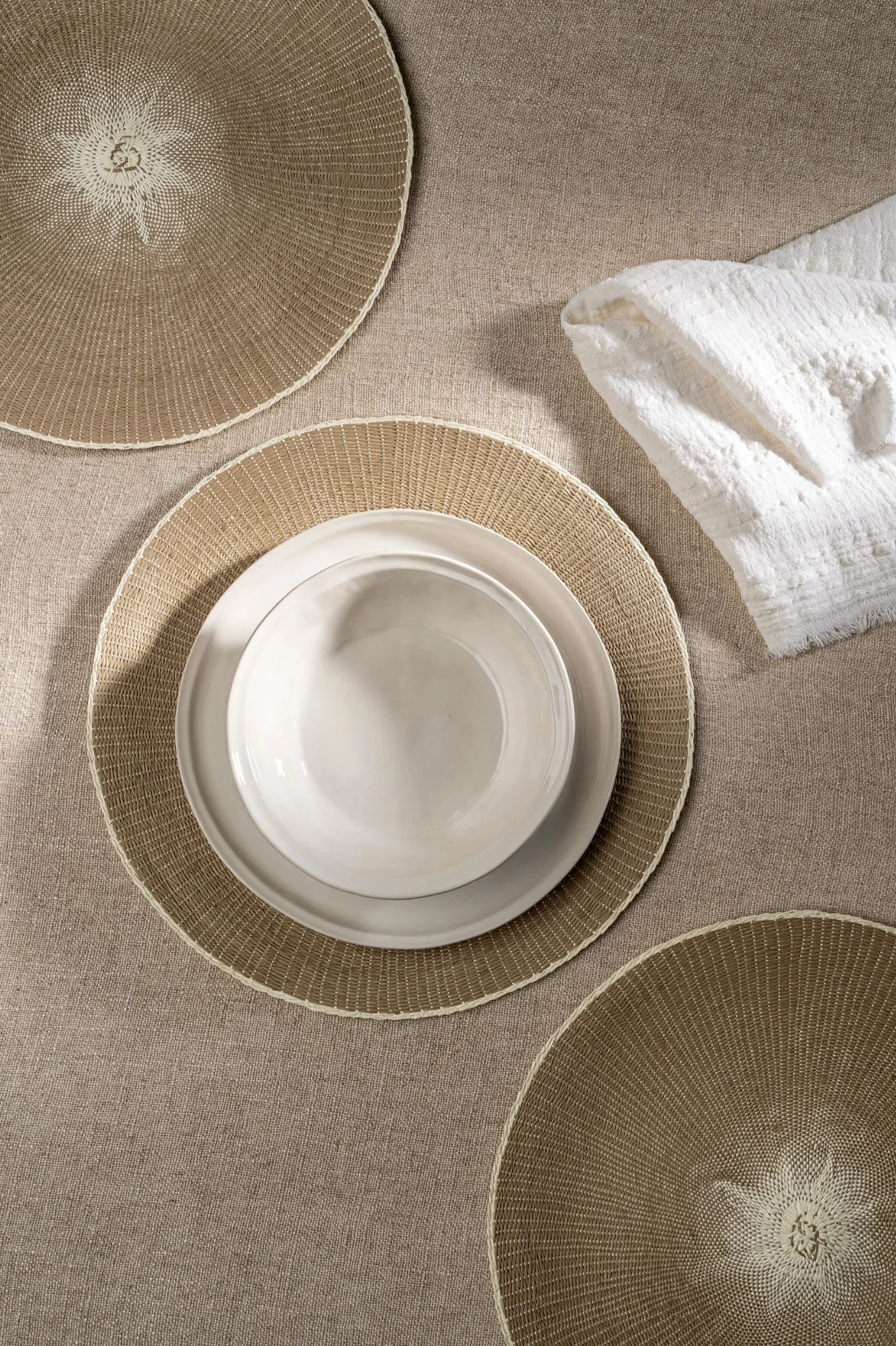 Handwoven from paper, our Willa Woven placemats are perfect for any occasion - dress them up or keep them casual. We love them layered on a tablecloth for that more-is-more layered look. Do not immerse in water. Wipe with damp cloth to clean.