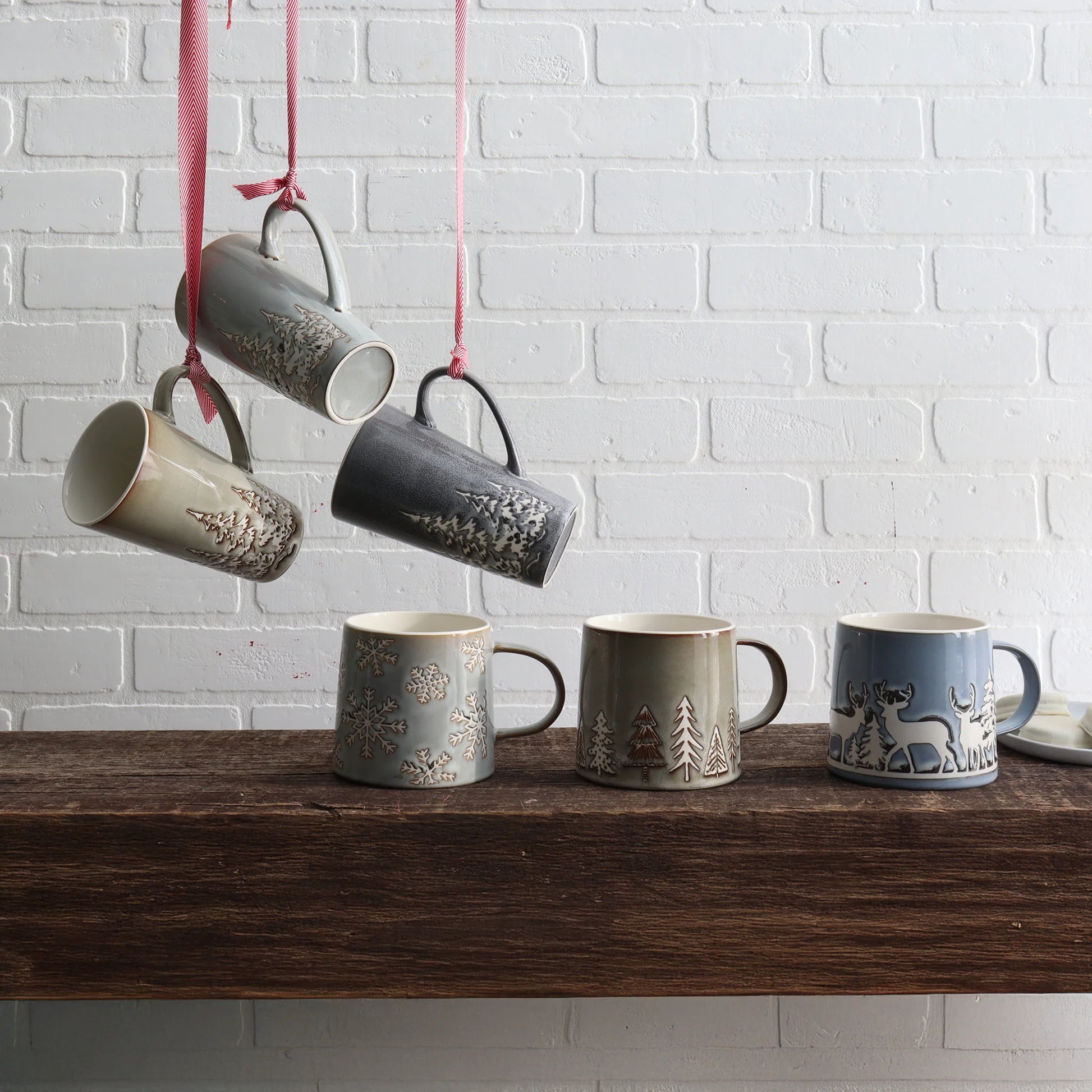 ENJOY THE SEASON WITH THESE CERAMIC WINTER-THEMED REACTIVE MUGS. WITH THREE STYLISH MUGS IN EACH SET, THE REACTIVE GLAZE ADDS A UNIQUE FINISH, MAKING THEM A CHARMING ADDITION TO YOUR HOLIDAY BEVERAGE ROUTINE.